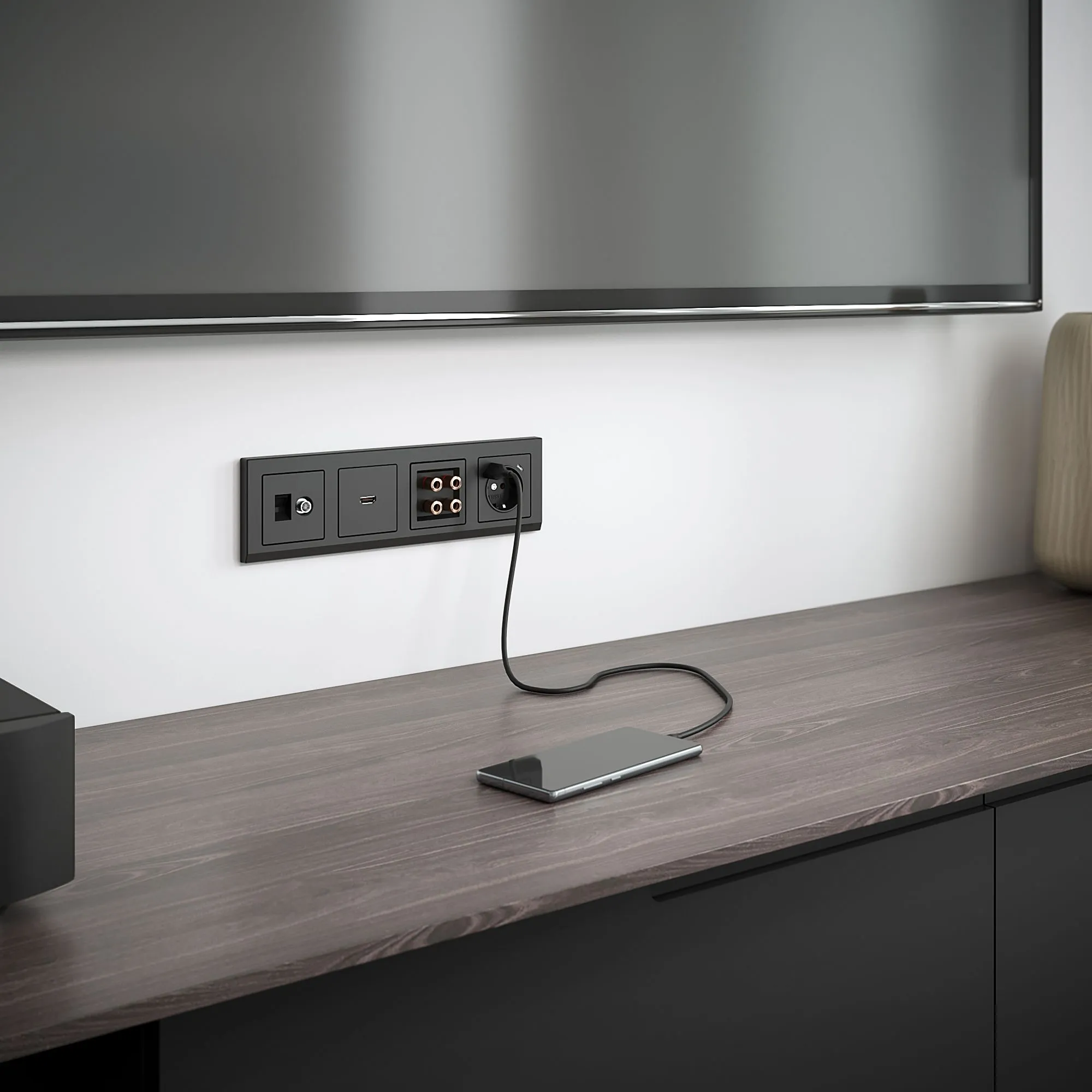 Преимущества розетки с USB тип A+C черный матовый: