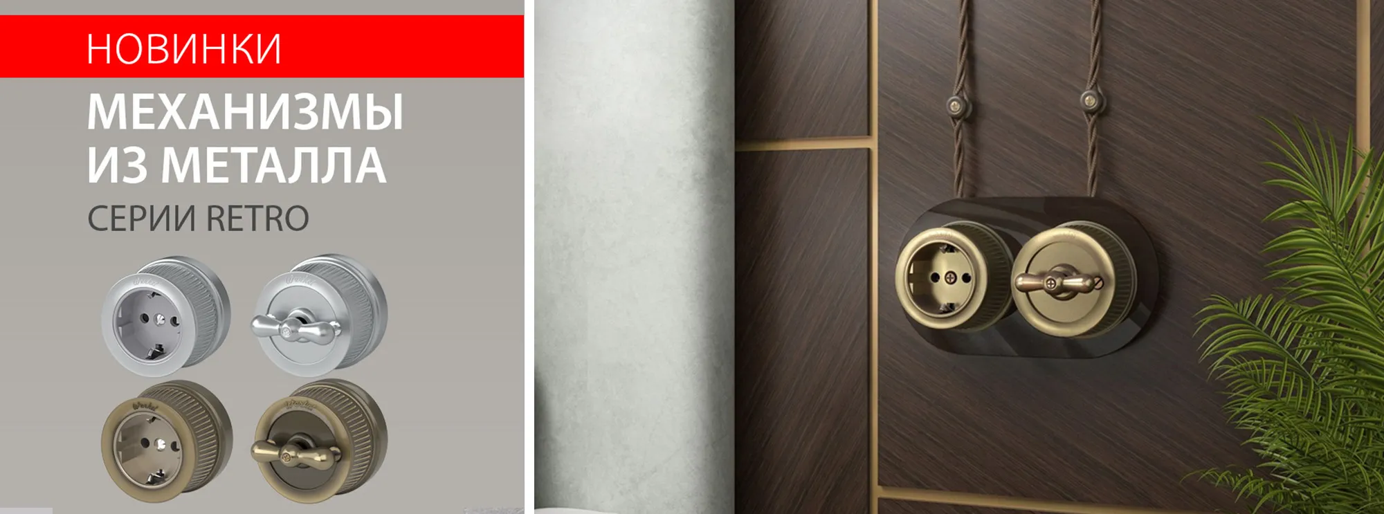 Серия ретро пополнилась эксклюзивными металлическими ретро розетками и выключателями.